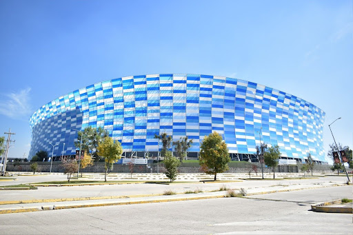 The stadium, originally built in 1967 and renovated in 2014-2015, now boasts a striking 30,000-square-meter ETFE façade composed of 124 vertically arranged panels that form a mosaic in various shades of blue and white, paying homage to the local football club, FC Puebla.