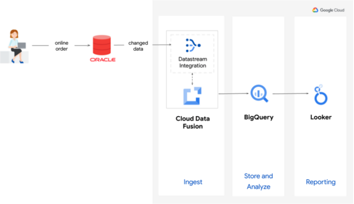 BigQuery receives the modified data in a stream. For effective data streaming, Google Cloud provides tools like Apache Kafka, Google Cloud Pub/Sub, and Dataflow.